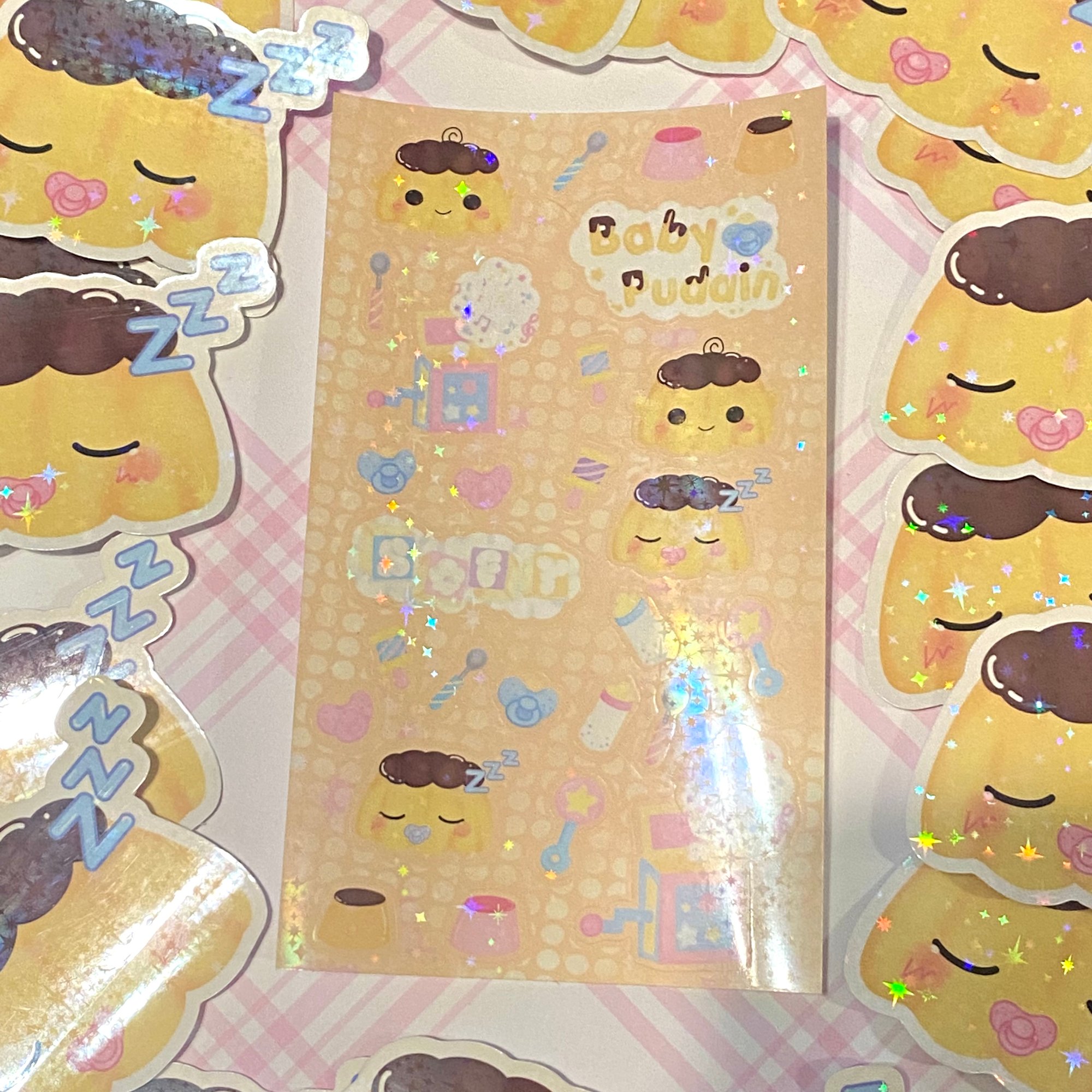 Baby Puddin Sticker sheet. Featuring a sweet & soft baby puddin !