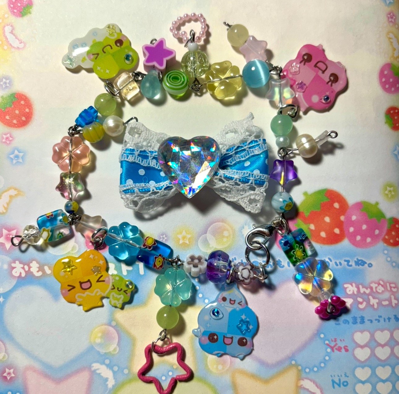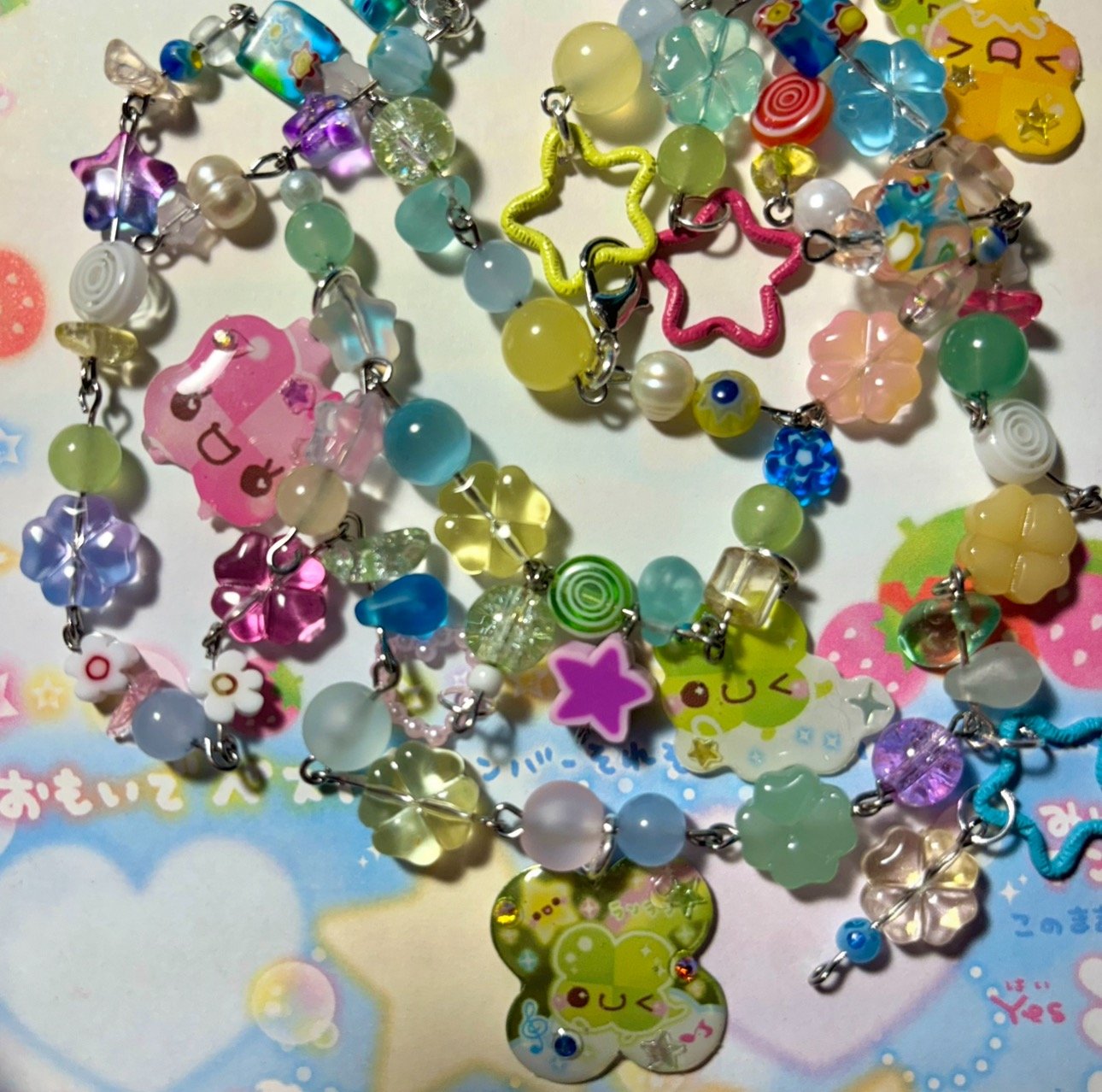super lucky charm bracelet ππ©·π©΅πππ§‘ made with glass beads + vintage stickers