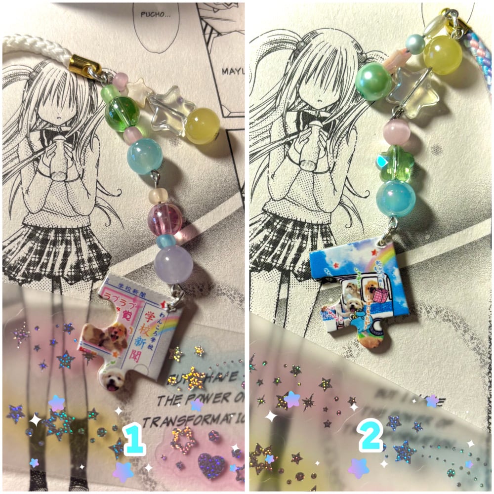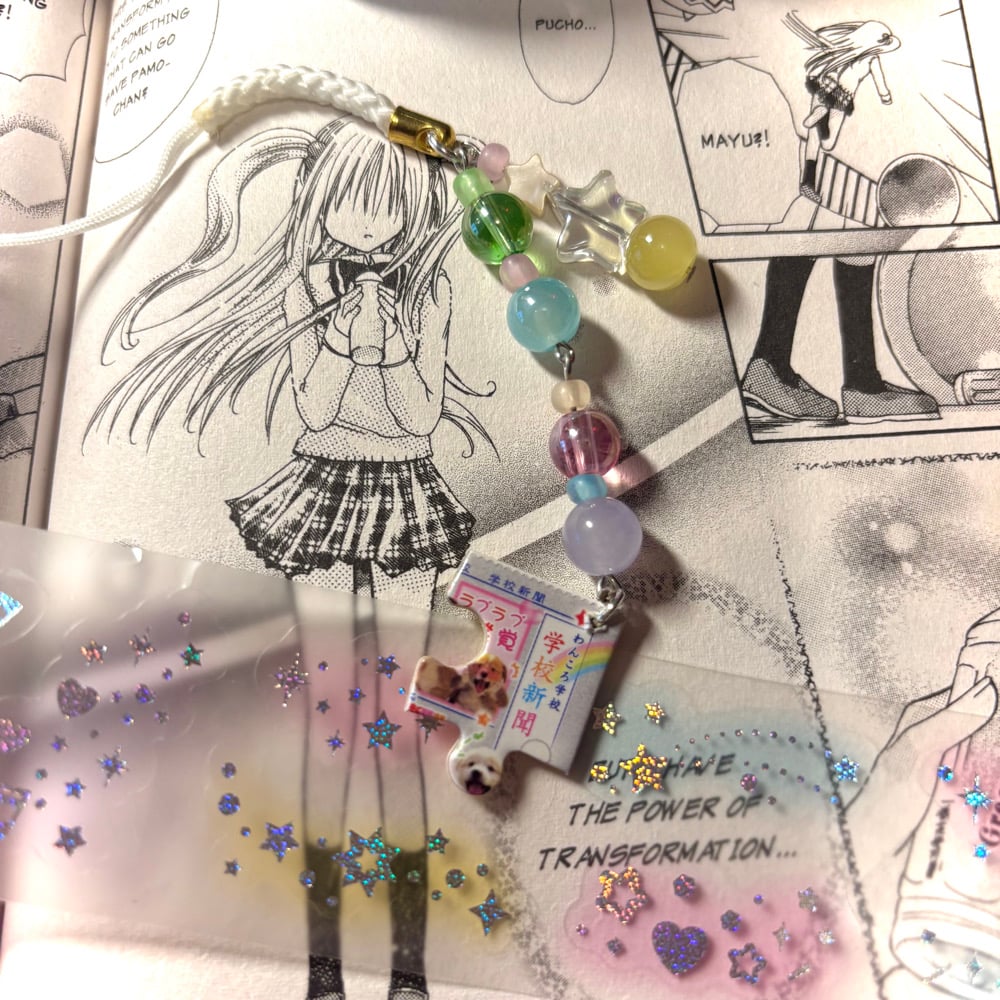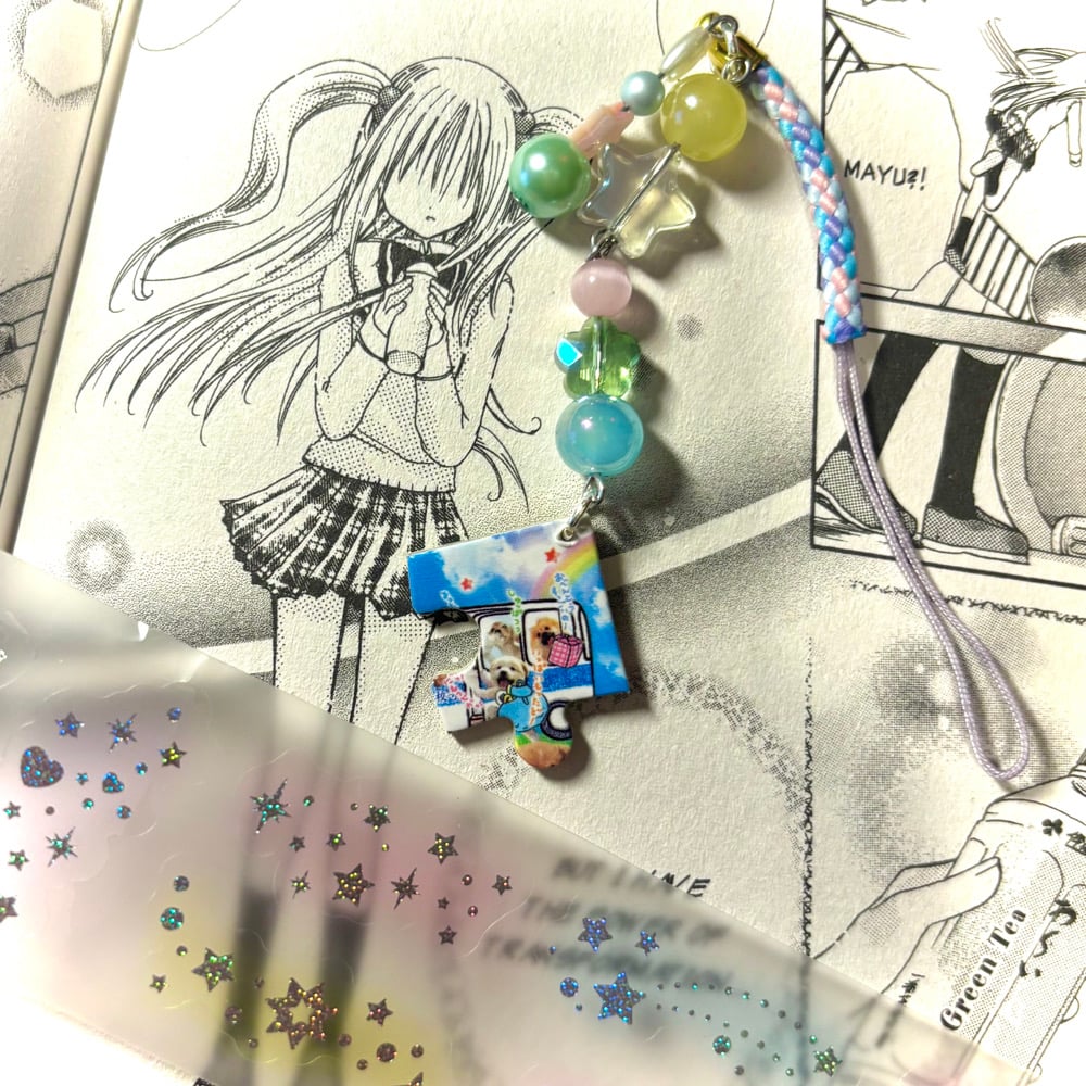 rainbow heisei retro puzzle piece phone charm